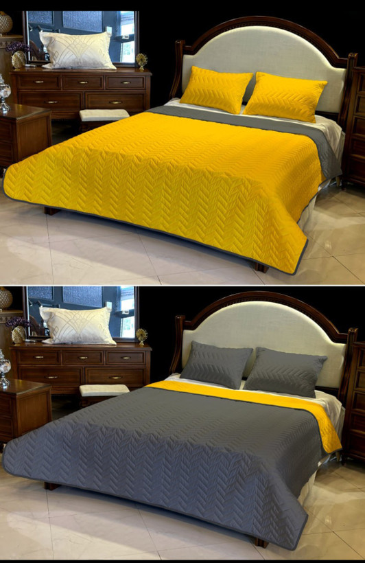روتختی پنبه دوزی دورو رنگ زرد/طوسی