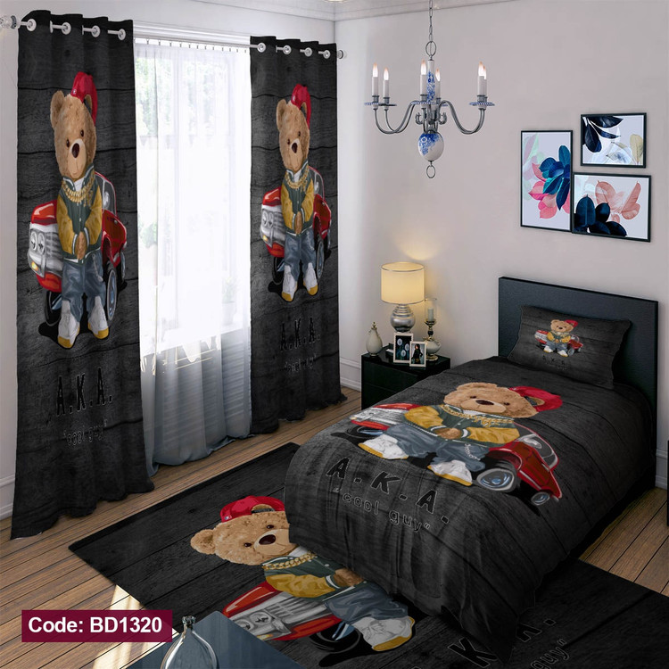 روتختی کودک و نوجوان طرح خرسی و ماشین رنگ مشکی کدBD1320
