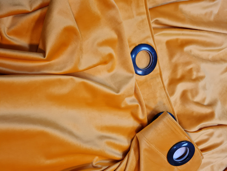 ایستایی(چین پذیری)پرده مخمل بسیار عالی است.رنگ حلقه پانچ پرده مخمل از جنس پلاستیکی و همرنگ پارچه است.