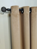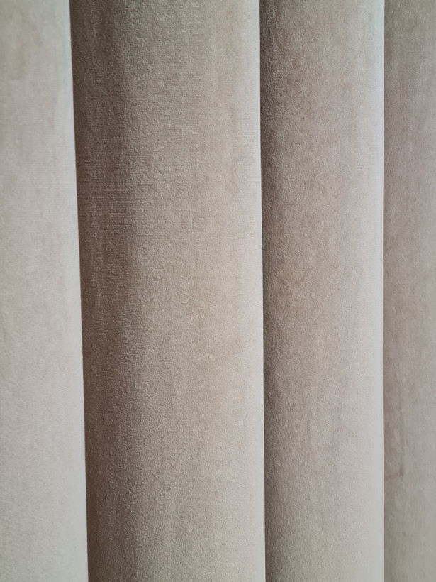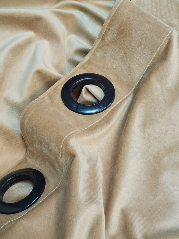 ایستایی(چین پذیری)پرده مخمل بسیار عالی است.رنگ حلقه پانچ پرده مخمل از جنس پلاستیکی و همرنگ پارچه است.