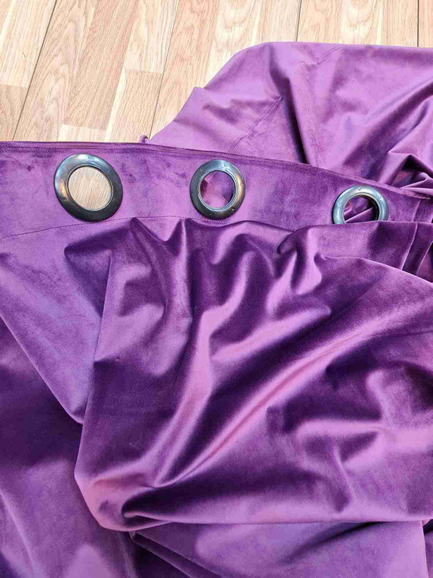 ایستایی(چین پذیری)پرده مخمل بسیار عالی است.رنگ حلقه پانچ پرده مخمل از جنس پلاستیکی و همرنگ پارچه است.